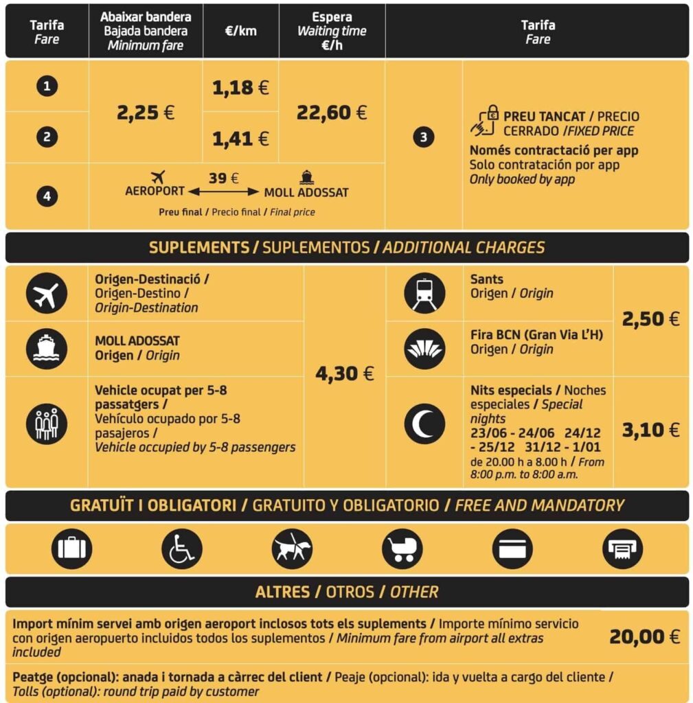 Barcelona airport taxis follow a metered pricing system, with fares calculated based on distance and time. However, additional charges apply in specific cases, such as airport pick-ups and late-night rides. Below is a breakdown of typical costs: